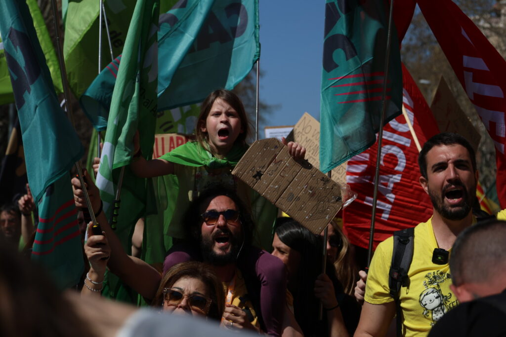 Durant més d’una hora, des de la plaça Tetuan fins al parc de la Ciutadella, l’ambient ha estat festiu i reivindicatiu, entonant cançons i lemes i escenificant la desitjada baixada de ràtios i l’augment de sous, ajupint-se i posant-se dempeus: “Com volem les ràtios? Avall, avall. I la burocràcia? Avall, avall. I com volem el sou? Amunt, amunt”.