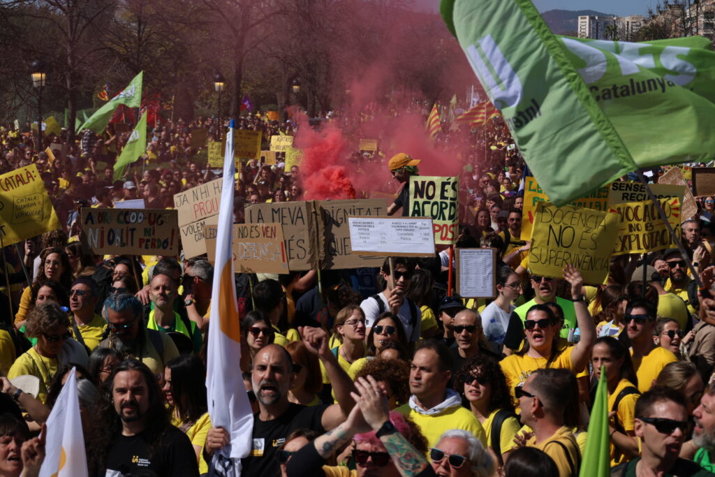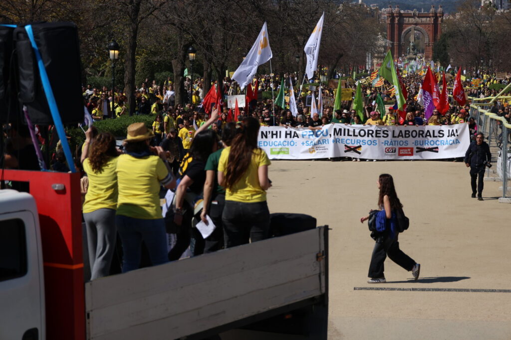Per part seva, el portaveu de La Intersindical Educació, Marc Martorell, ha subratllat que feia “dècades” que no es veia una mobilització per l’educació com aquesta a Barcelona que es tradueix, ha dit, en un “no” al pacte Govern-CCOO-UGT i ha desglossat algunes de les reivindicacions del sector: destinar un 6% del PIB a Educació, un augment salarial que garanteixi recuperar la pèrdua del 25% del poder adquisitiu dels últims anys, més personal PAE, estabilitat de plantilles i una immersió lingüística efectiva a les aules.