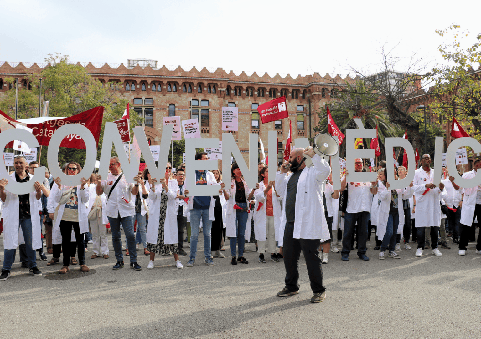 El col·lectiu mèdic ja fa mesos que reclama un conveni propi «que reculli les particularitats d’una professió singular amb característiques úniques que la fan diferent a la resta del col·lectiu sanitari; si som diferents per definir-nos unes condicions menys beneficioses a l’estatut marc, també ho som per tenir dret a un espai propi de negociació. Per primera vegada tots els facultatius de l’estat anem a una i ens mobilitzem de manera coordinada en una jornada històrica per la professió mèdica”. Segons Xavier Lleonart, secretari general de Metges de Catalunya, el conveni mèdic és “perfectament possible” si hi ha voluntat política. La solució passaria per «deixar de tenir els metges i facultatius d’aquest país en unes condicions que són de semi-esclavatge, deixar de fer guàrdies de 24 horas, que impliquen un risc no només per la salut del professional sinó també per la salut de la ciutadania; i dotar a la professió médica facultativa d’unes condicions que facin factible donar assistència de màxima qualitat a la ciutadania», va resaltar Lleonart.