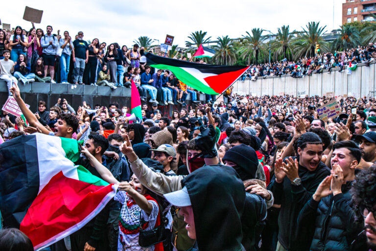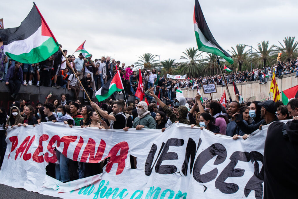 El Sindicat de Llogateres havia convocat la nit de dijous una assemblea per decidir si es feia una acampada a la plaça de les Drassanes. Una pancarta amb el lema ‘Palestina Vencerà, des del riu fins al mar’ obria la manifestació, en la que se sentien crits com “Aturem el genocidi”, “Destruïm l’estat sionista d’Israel”, “Free Palestine”, “Boicot a Israel” i “Fora les forces d’ocupació”.